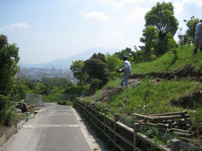 公園の斜面に受け付けた苗の育樹状況を観察していきます。